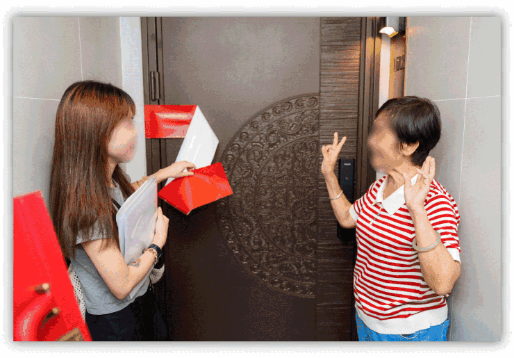 来到项目现场,高大的红色拱门上写着“恭迎业主 禧悦归家”,鲜艳的红地毯从入口一直铺向收房区。