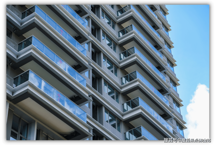 从外观上看,万和融禧公馆立面采用铝板金属线条+氟碳金属漆,同时配置LOW-E双层中空玻璃节能窗。