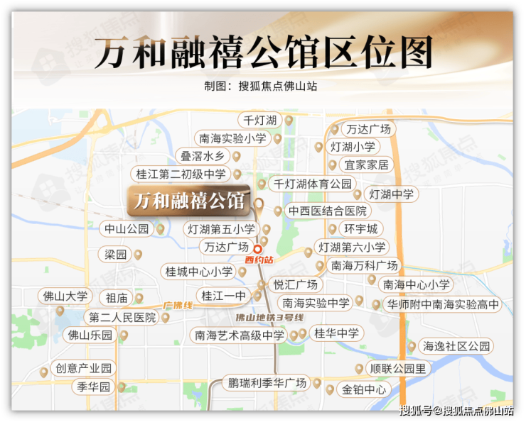 地铁3号线站到达桂城站,可以换乘广佛线站到达中山公园。教育方面,项目已纳入桂城街道桂一社区管理,按社区划分,对口