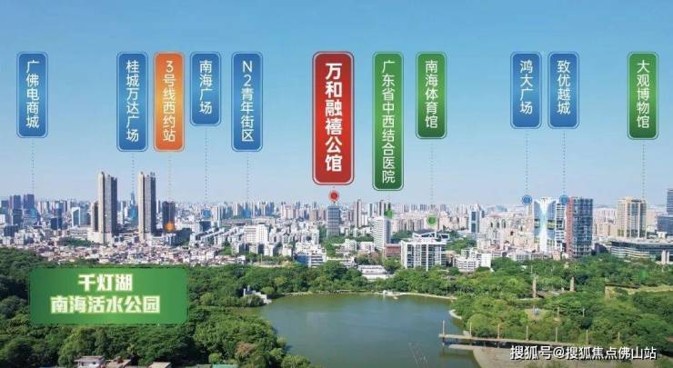 直线米,周边环绕南海体育馆、大观博物馆与南海文化中心等市政配套,约3分钟脚程内就可以抵达广东省中西医结合三甲医院。