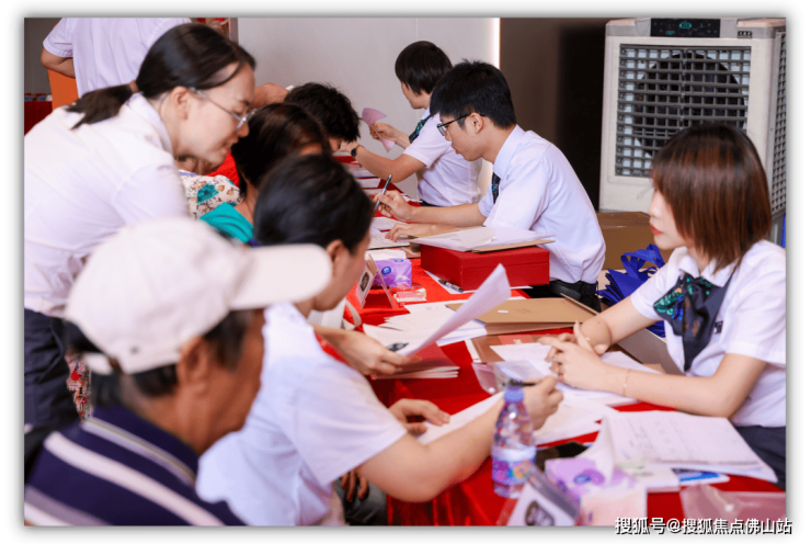 穿着统一制服的工作人员在签到处、资料审核区、钥匙领取区引导业主办理相关手续,并由“验房师”陪同检查。