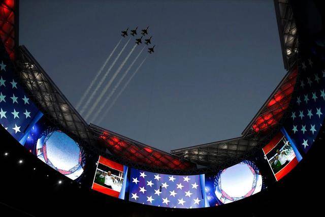 作为顶级赛事热场的经典环节,美国“超级碗”自1968年起便固定上演飞行特技秀。美军“雷鸟”“蓝天使”等特技飞行队驾机登场,时而低空掠场展现极致速度,时而以翻滚、叠飞勾勒酷炫轨迹,彩色烟雾更精准搭配球队配色,营造出专属赛事氛围。